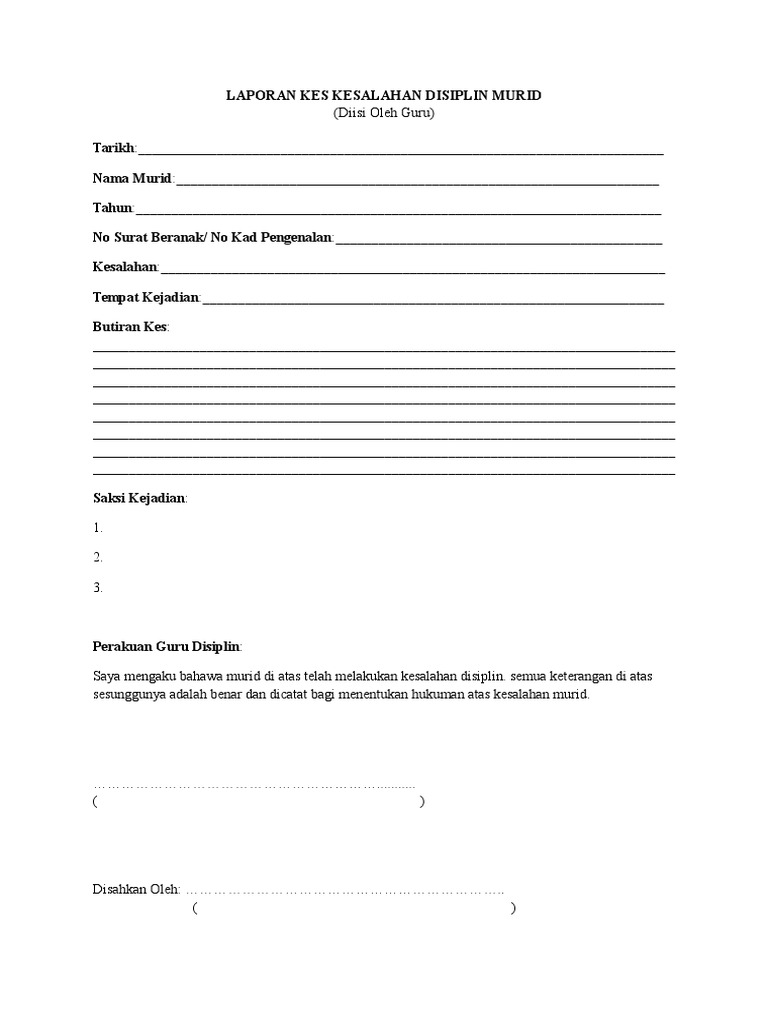 Related : Borang Laporan Disiplin Murid / Use the download button below or simple online reader..